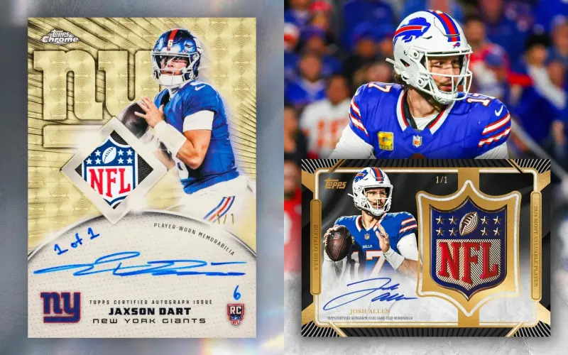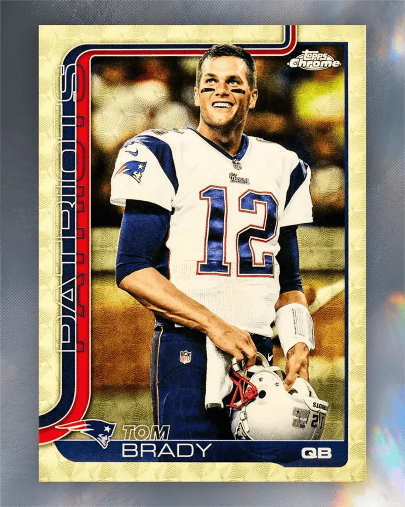 除了这两大亮点,2025-26赛季 Topps Chrome橄榄球系列全面展现了品牌在设计与工艺上的深厚积淀。全新系列采用Topps标志性的Chrome镜面折射工艺,绚丽卡面璀璨夺目,彰显了联盟的“传承、巅峰与未来”。球员名单方面堪称豪华,该系列不仅囊括了32支NFL球队的全部现役球星与新秀,更首次迎来了传奇巨星汤姆·布雷迪的签名卡亮相于Topps Chrome产品中,与其他Fanatics Collectibles独家签约球星杰登·丹尼尔斯、德雷克·梅耶、CJ·斯特劳德、博·尼克斯、杰里·赖斯等共同组成庞大阵容。